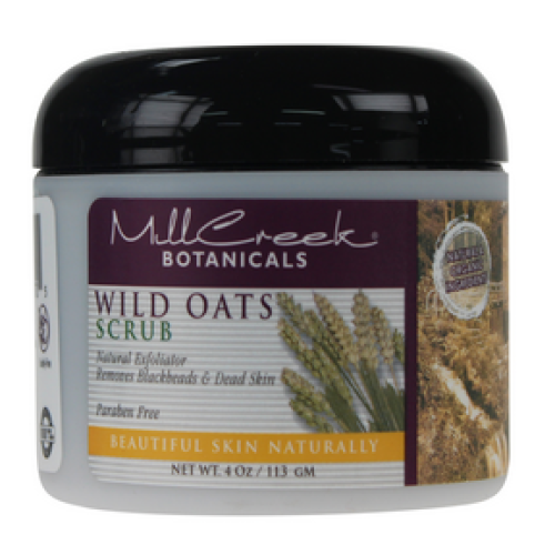 Mill Creek Botanicals Wild Oats Scrub exfoliates skin naturally with honey, comfrey vitamin E and oats to removes dead skin cells and black heads This product also gives your skin a deep cleanse while stimulating circulation to bring out your skins natural glow.